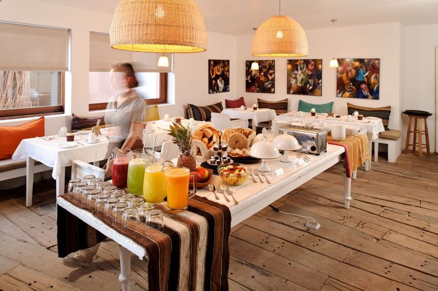 Con cálidos toques de madera y una vibrante decoración inspirada en el Altiplano, el restaurante Casa Paniri ofrece un viaje culinario a través de platos gourmet chilenos e internacionales, perfectamente maridados con una amplia selección de vinos chilenos.